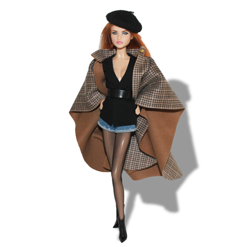 Este visual revisita os códigos da moda parisiense ao unir tradição e modernidade. Uma presença irresistível… Mas qual Barbie será capaz de encarnar perfeitamente esse estilo de “alta-costura urbana”?